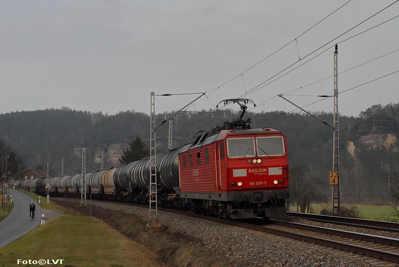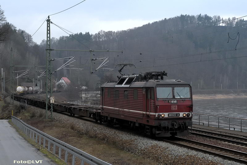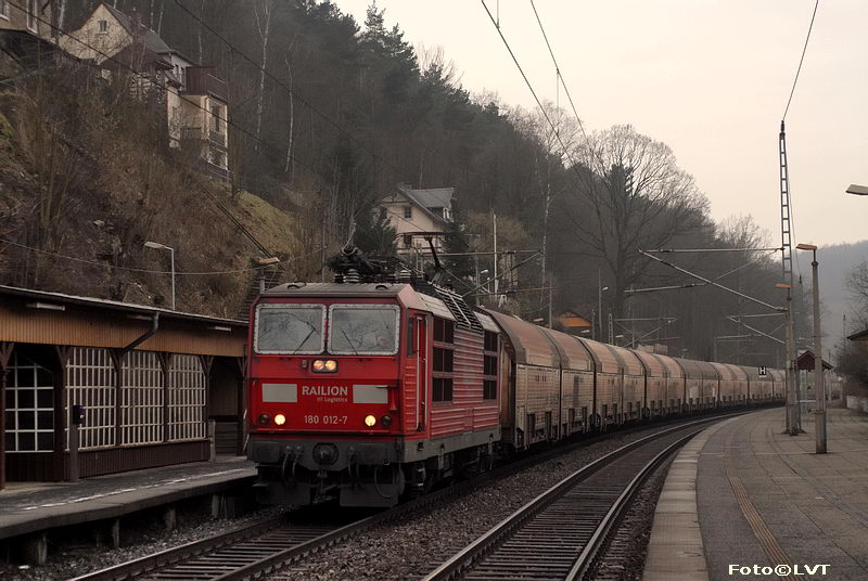 ![]() | Keine Sonne im Elbtal aber auch kein Dauerregen wie die letzten Tage vor unsere Pension in Stadt Wehlen wurde 180 012 mit dem Carlogistik abgelichtet, der eigentlich nur nachts auf der Strecke verkehrt