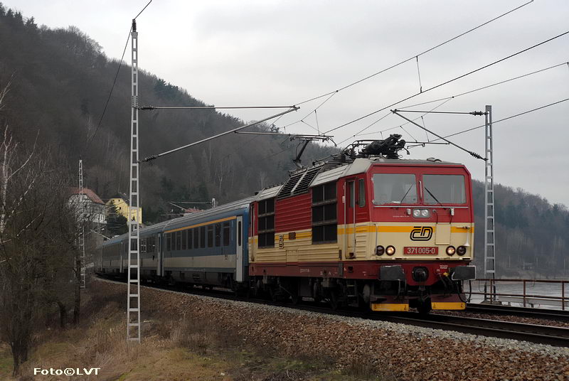 ![]() | Verspäteter Nachtzug aus Amsterdam nach Prag mit der CD 371 015 in Wehlen