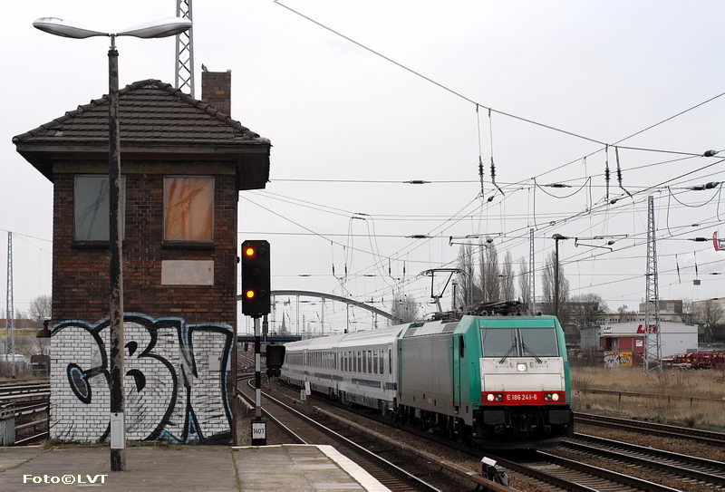 ![]() | in der Gegnrichtung kommt wenig später der EC aus Warschau mit der 186 241