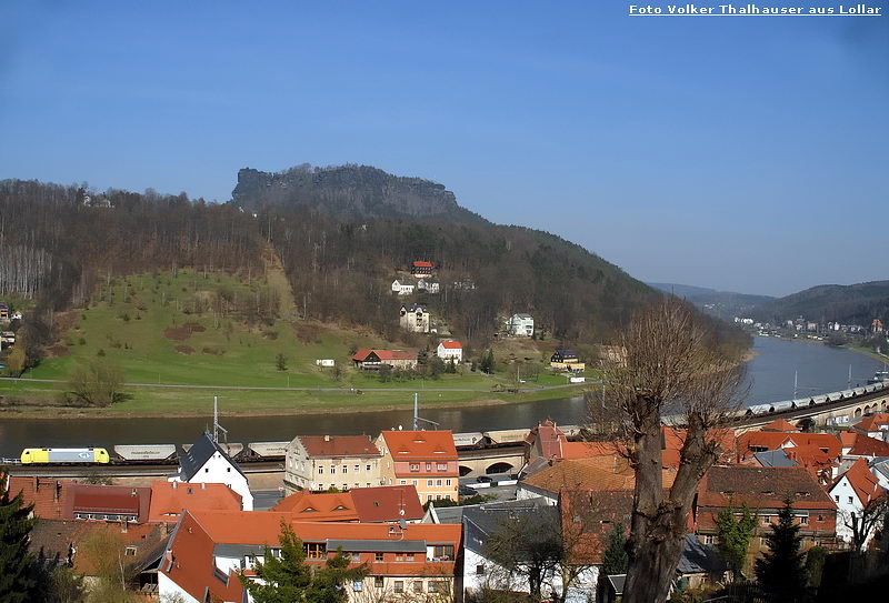 ![]() | Der Lilienenstein auf der anderen Seite von Königstein bringt die ITL 152 902 besonders gut zur Geltung