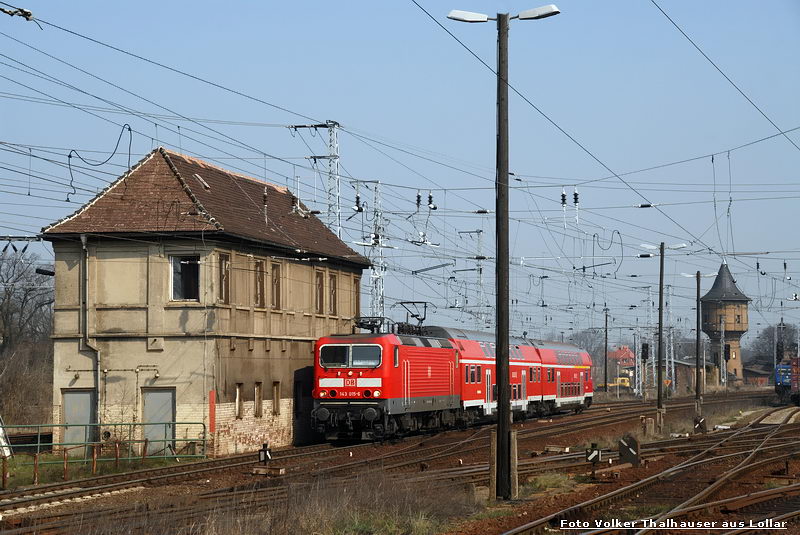 ![]() | Das alte Stellwerk passiert 143 015 mit dem Eilzug nach Leipzig