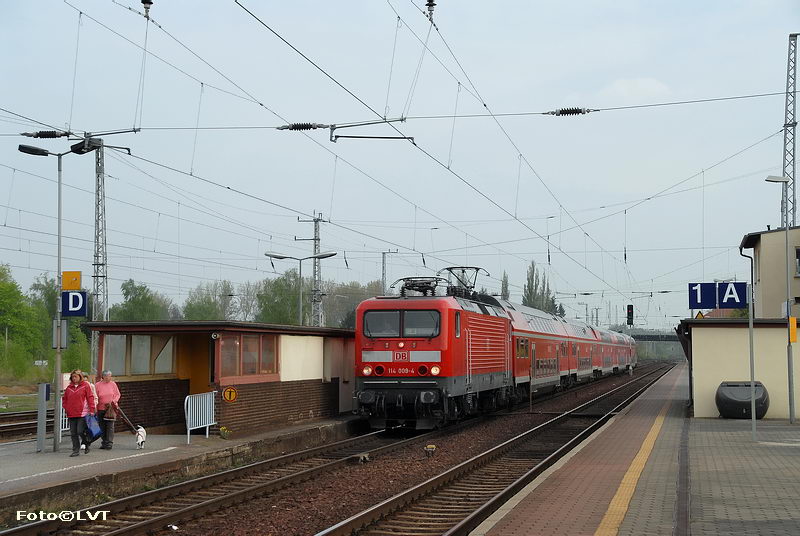 ![]() | Das erstemal das ich nach dem Unfall von 1997 in Elsterwerda war 114 009 fährt mit einen RE ein hinter der Lok waren die Anlagen des nach dem Brand abgerissenen Bws