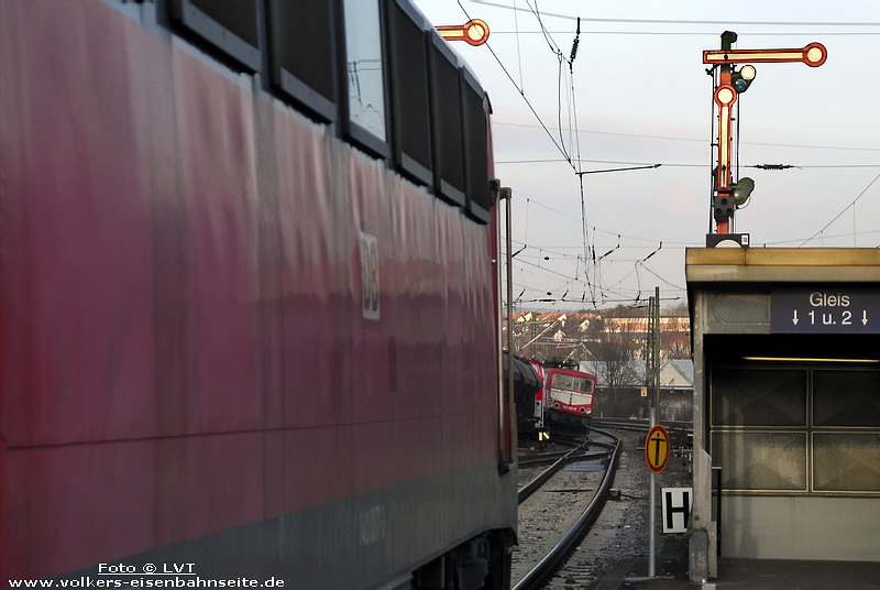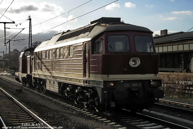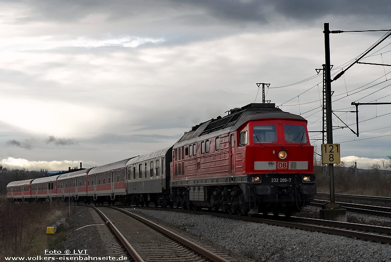 ![]() | Man hörte schon von weiten das elektrische Bremsen 232 209 folgte im Abstand von der Arnstädter Seite |