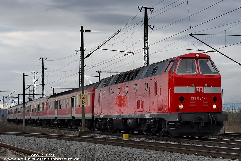 ![]() | Leider zu früh 219 084 in voller Fahrt bei der Einfahrt Neudietendorf |