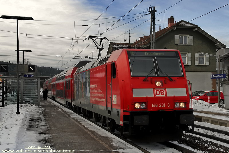 ![]() | Sankt Georgen im Schwarzwald 146 231 fährt mit ihren RE nach Kreuzlingen aus |